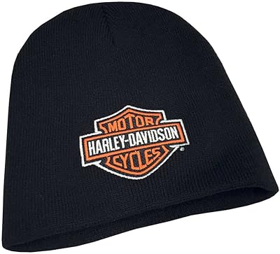Harley-Davidson Mens Embroidered Bar & Shield Knit Beanie Cap, Black Hat