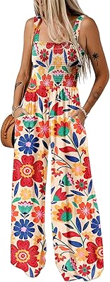 Dokotoo Womens Casual Loose Overalls Jumpsuits One Piece Sleeveless Printed Wide Leg Long Pant Rompers With Pockets