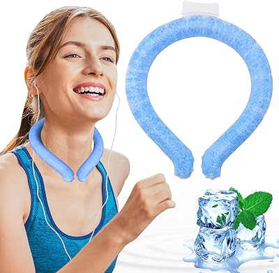 Neck Cooling Tube, Portable Wearable Cooling Neck Wraps Freezes Below 64F, Reusable Ice Ring Body Cooling Products for Indoor Outdoor Sports, Outdoor Workers Blue, L